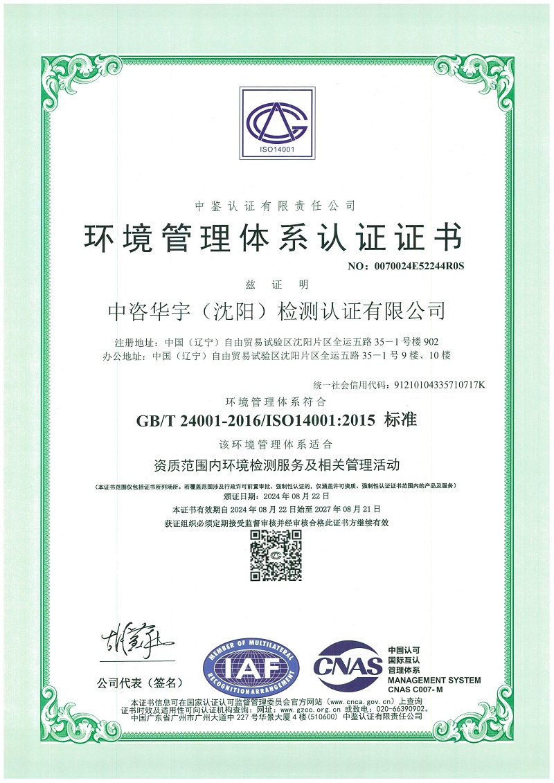 遼寧中咨華宇環保技術有限公司成立于2011年1月,實繳資本金3000萬人民幣,自有辦公用房5000平方米??毓晒炯胺种C構:中咨華宇(沈陽)檢測認證有限公司、遼寧中碳鑫創碳資產管理有限公司、湖南盛大環??萍加邢薰具|寧中咨華宇環保技術有限公司湖南分公司、黑龍江分公司、內蒙古分公司、海南中安科分公司等。